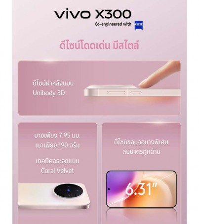 | MODEL | Vivo X300 รุ่น 5G (16/512GB) กล้อง ZEISS 200MP l บาง 7.95 มม. |
